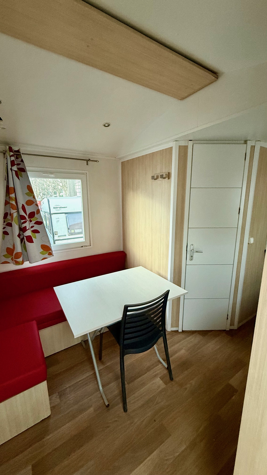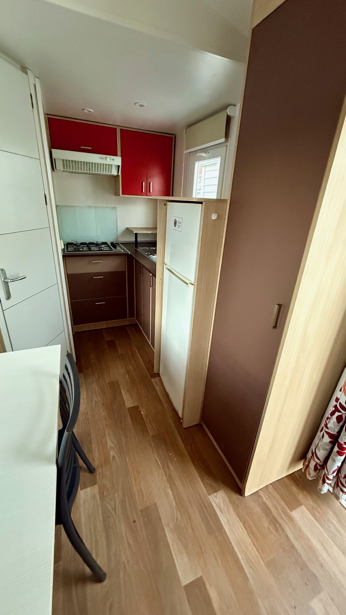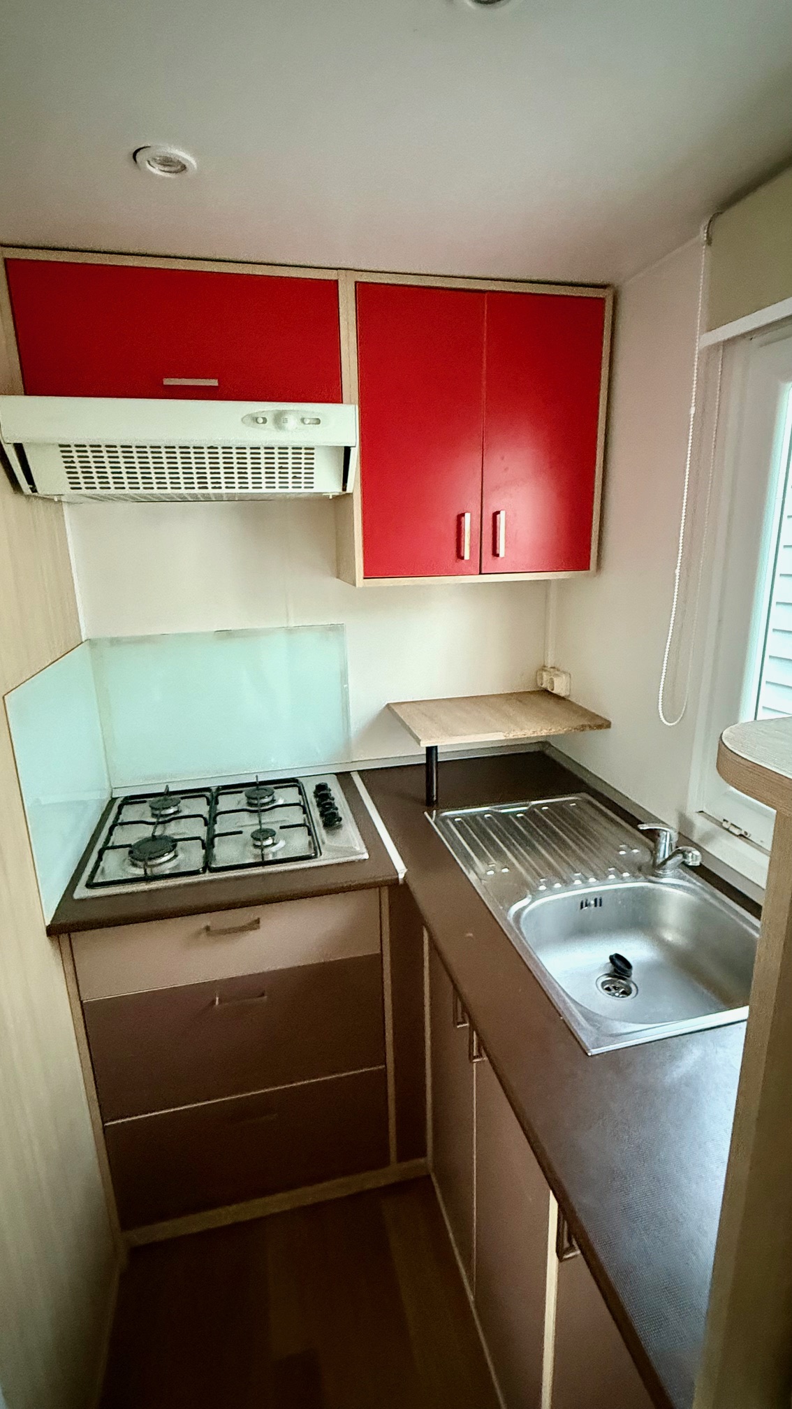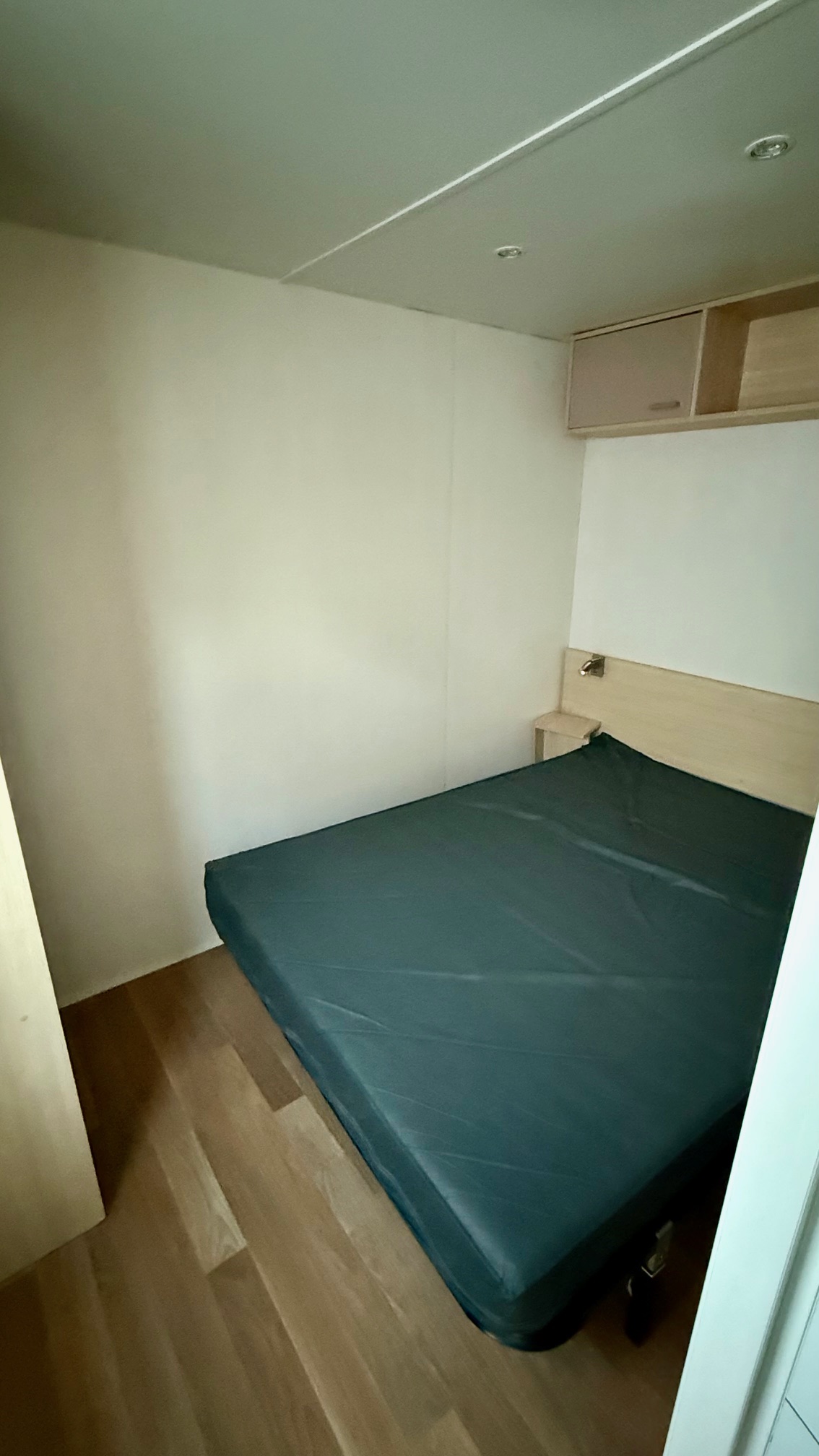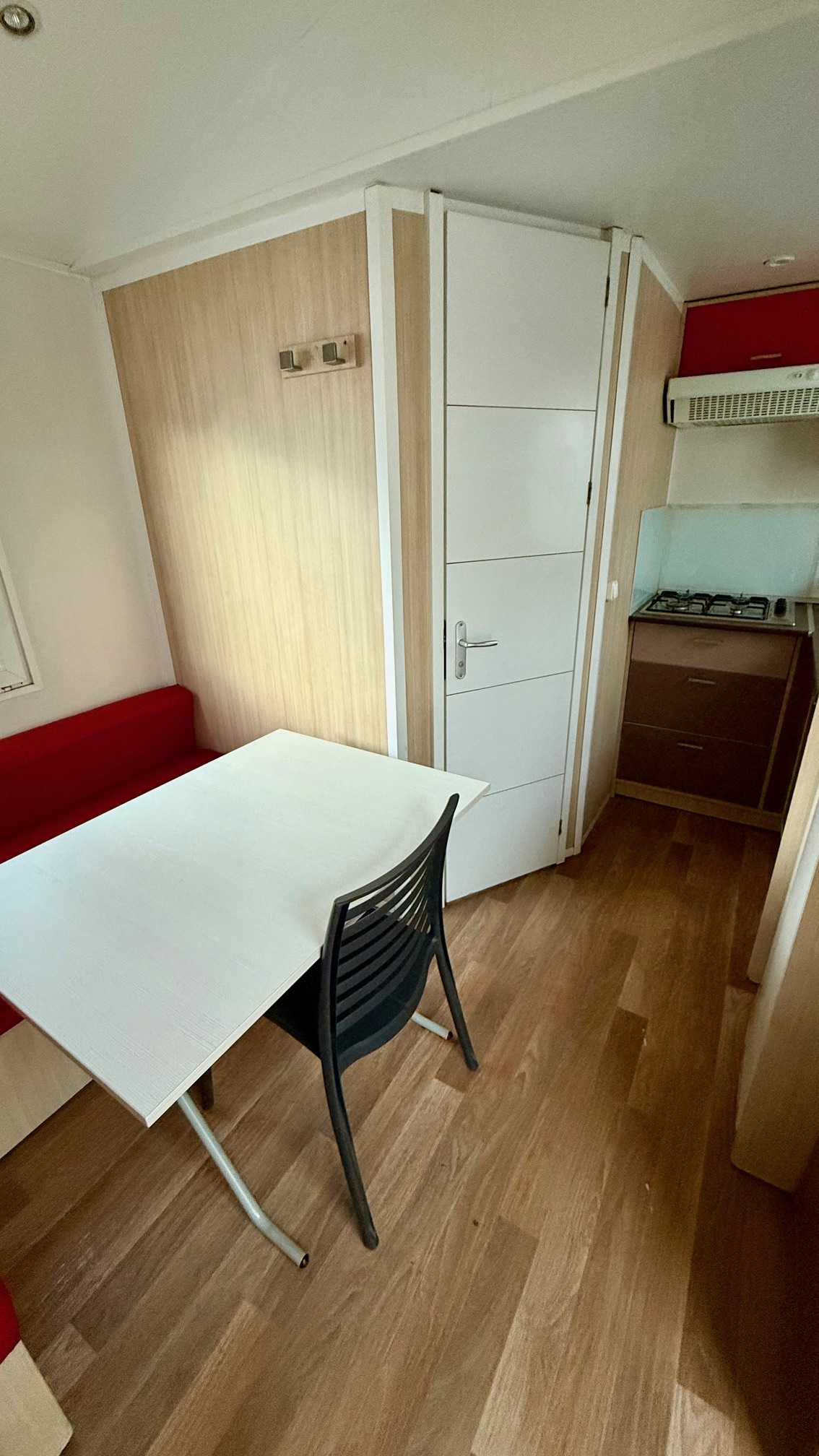 Camera matrimoniale, salotto con divano trasformabile in letto matrimoniale, cucina ad angolo e bagno con box doccia.