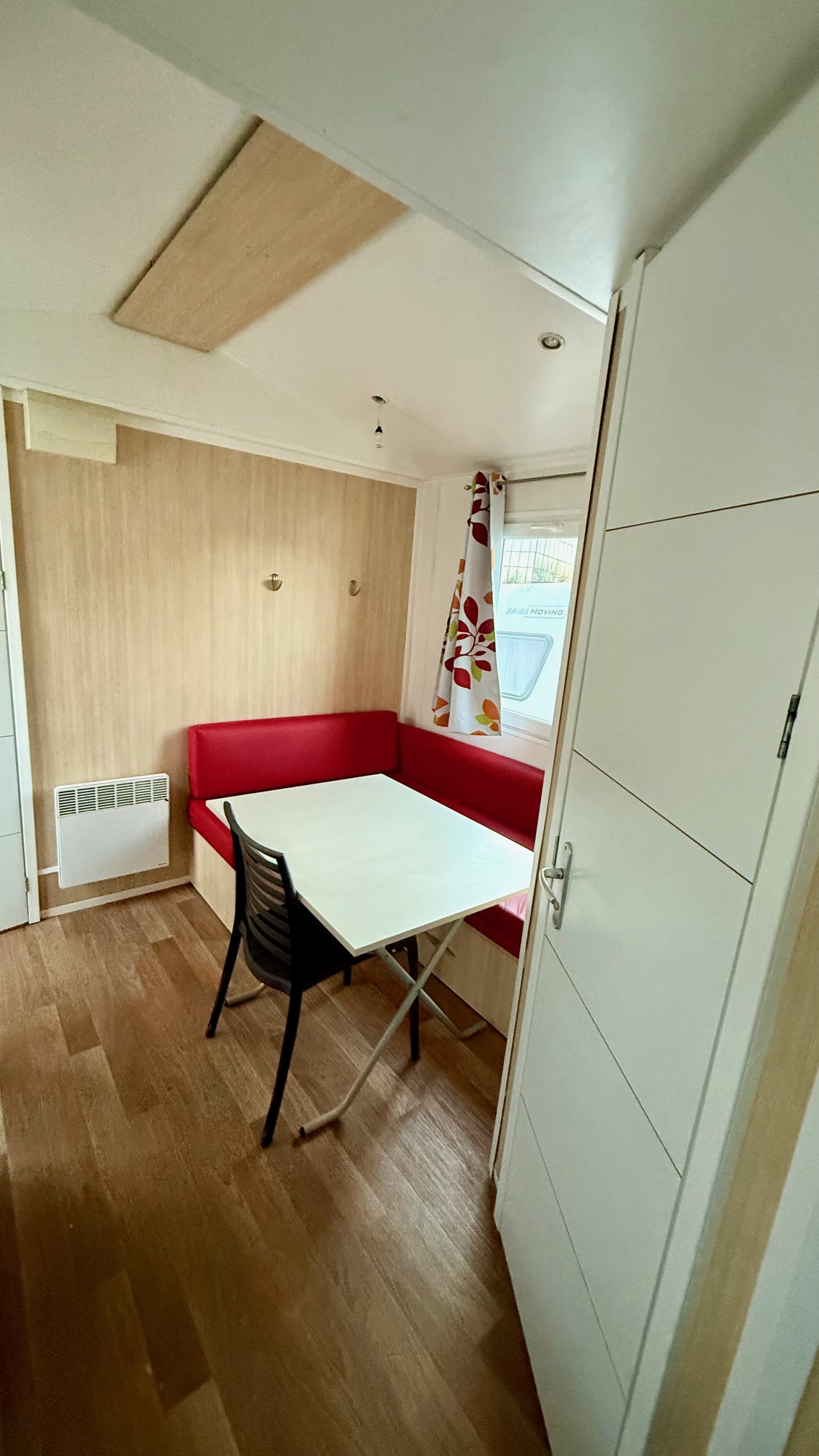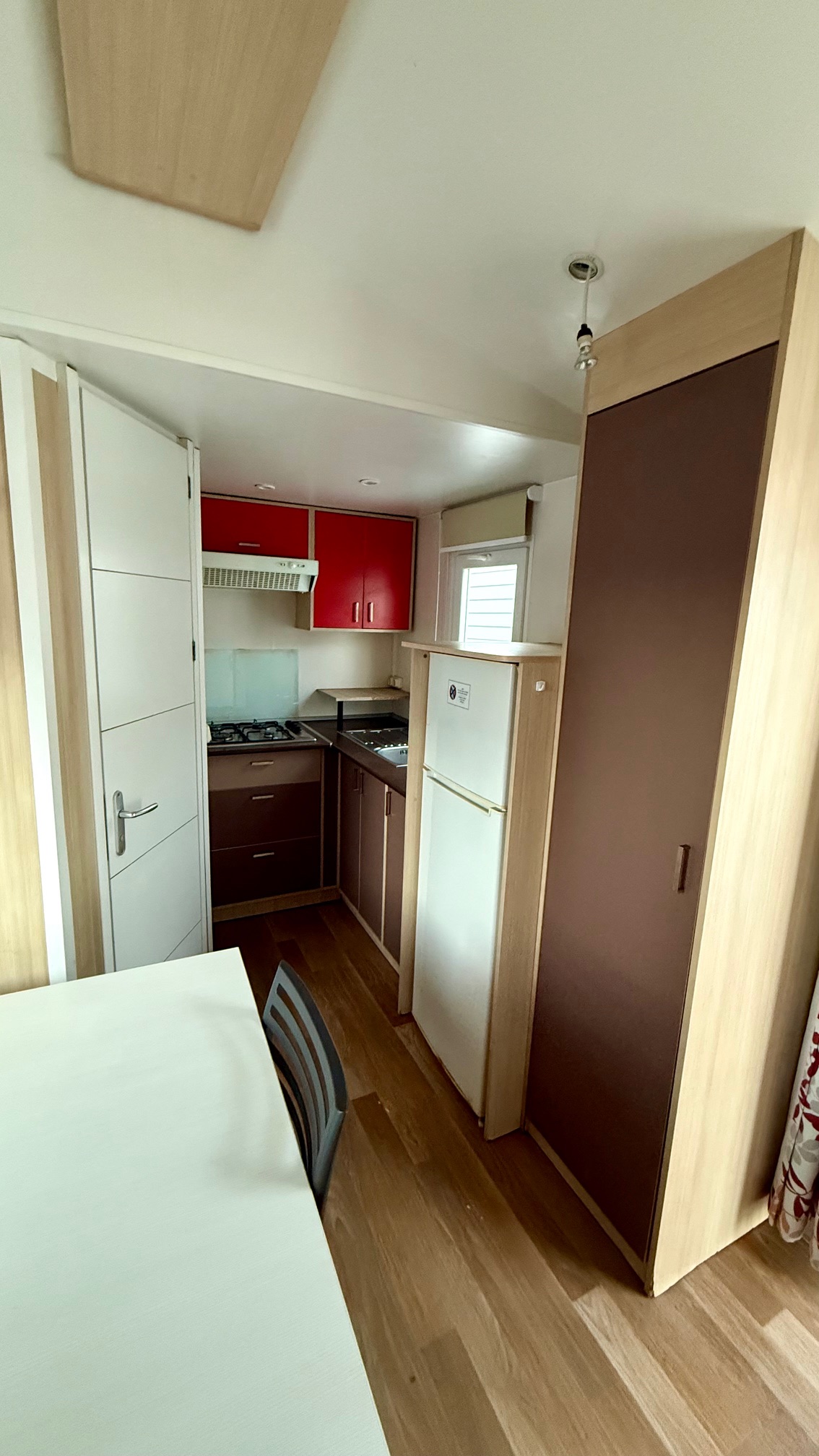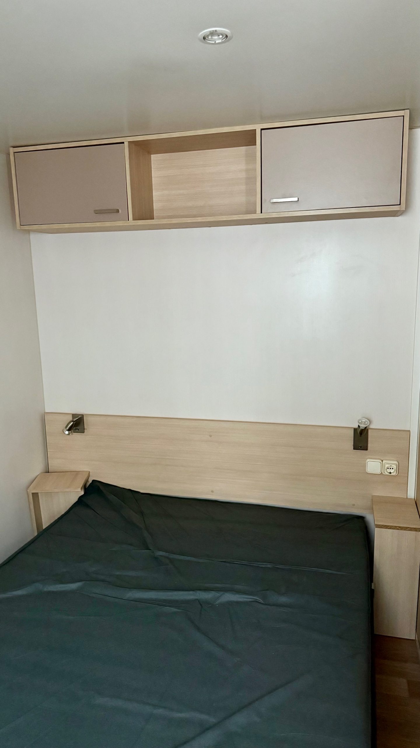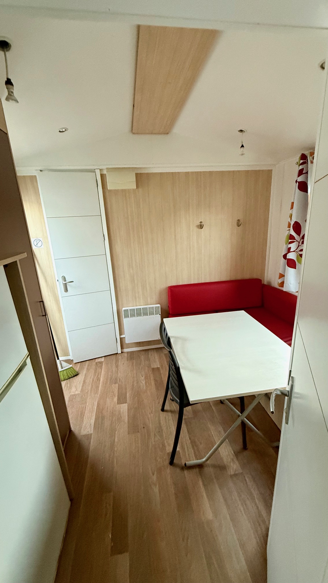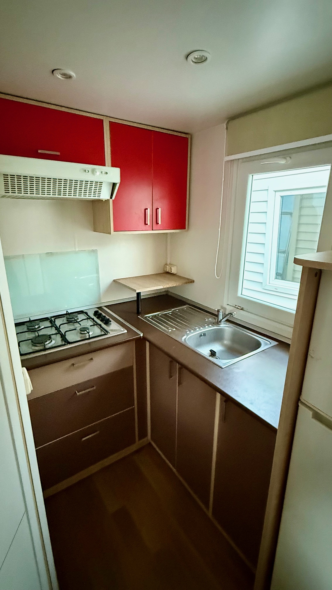 Camera matrimoniale, salotto con divano trasformabile in letto matrimoniale, cucina ad angolo e bagno con box doccia.