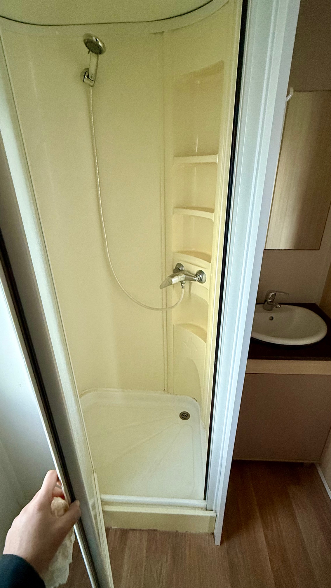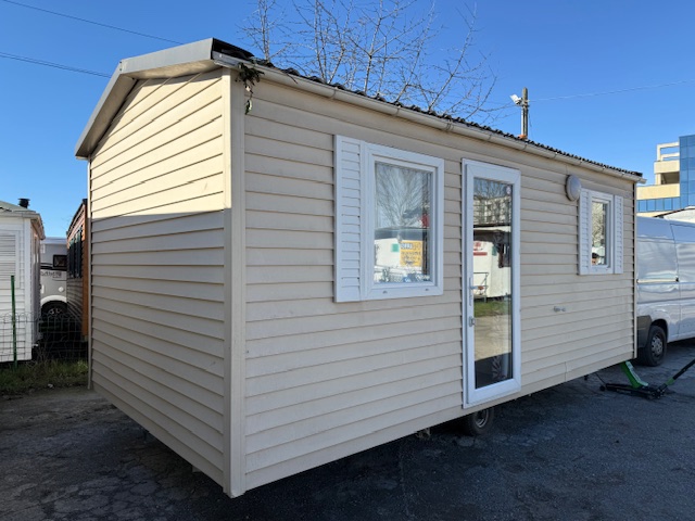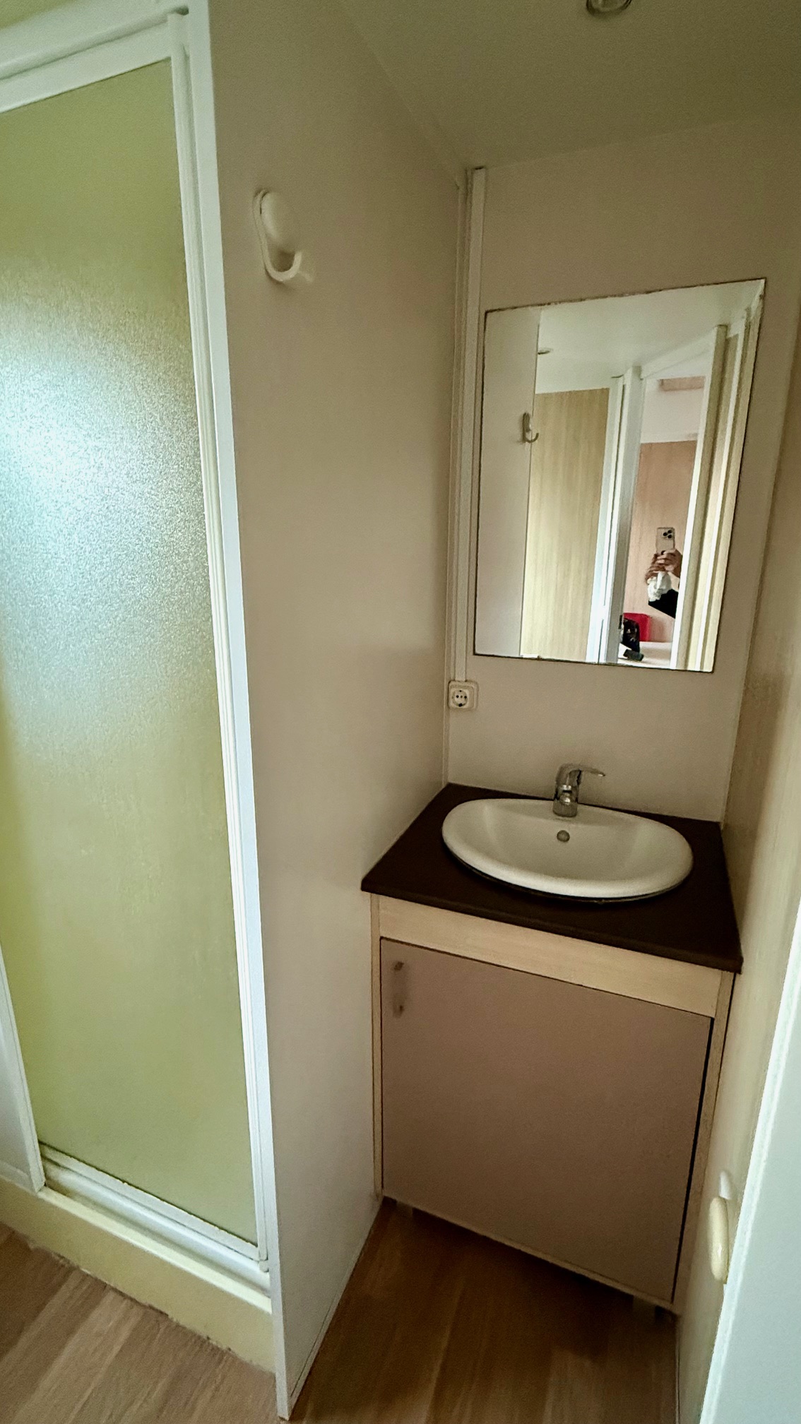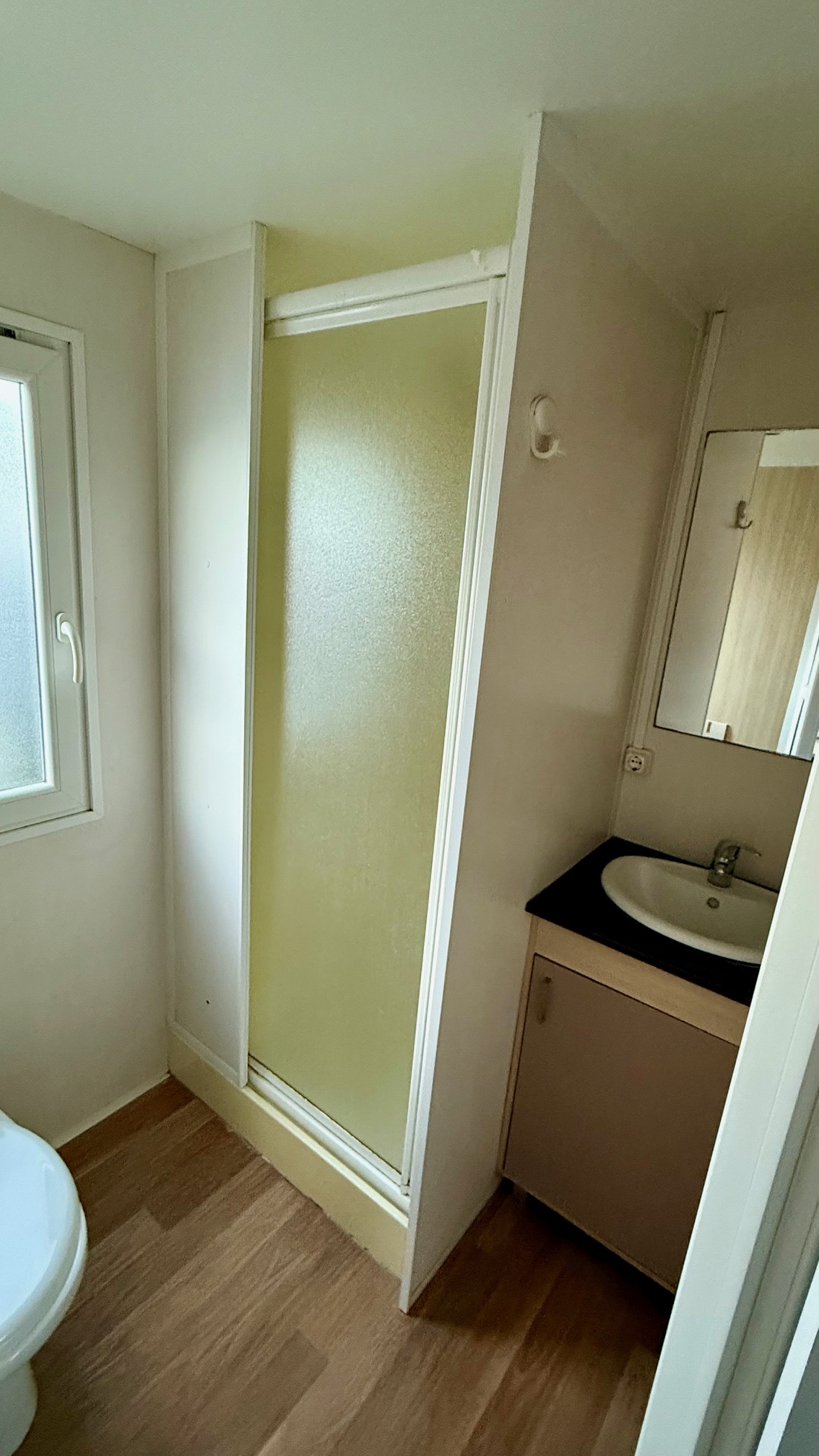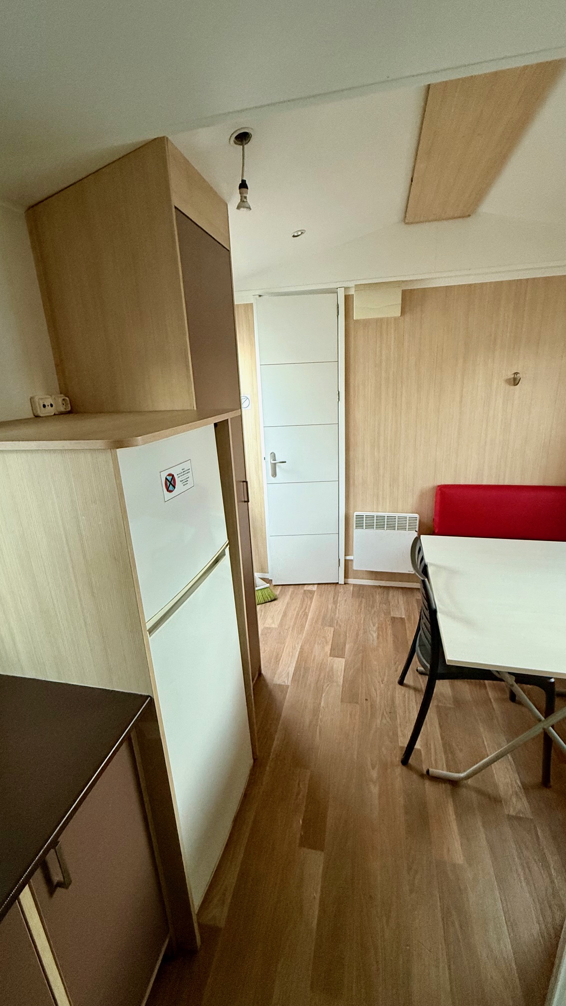 Camera matrimoniale, salotto con divano trasformabile in letto matrimoniale, cucina ad angolo e bagno con box doccia.