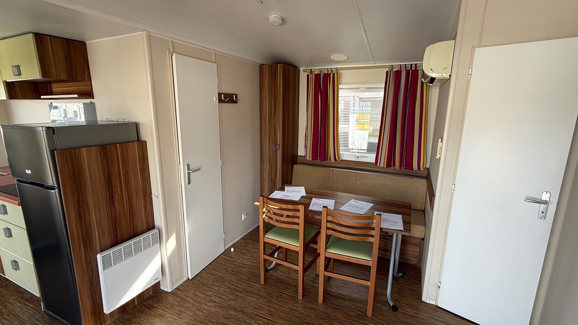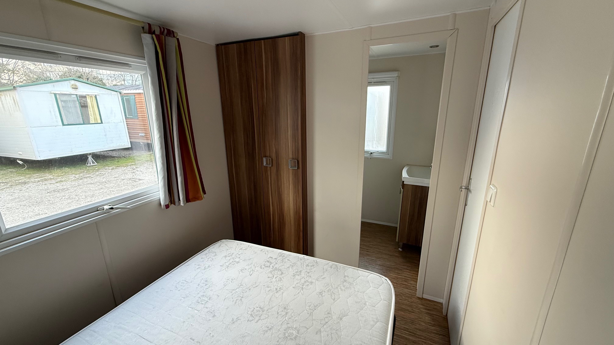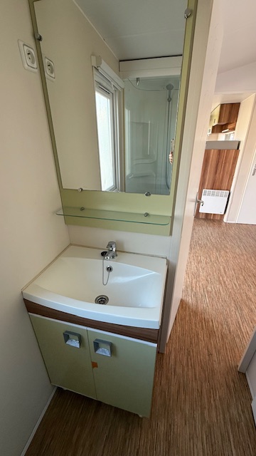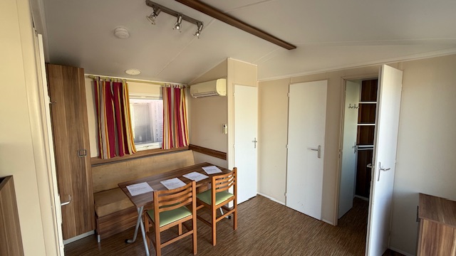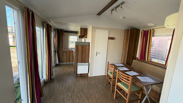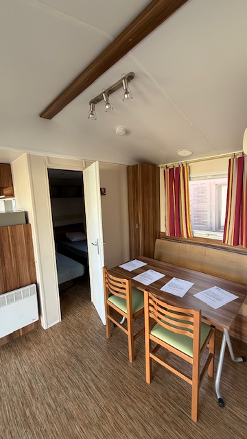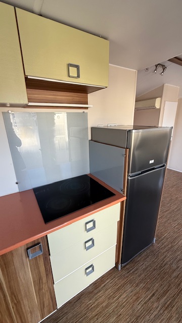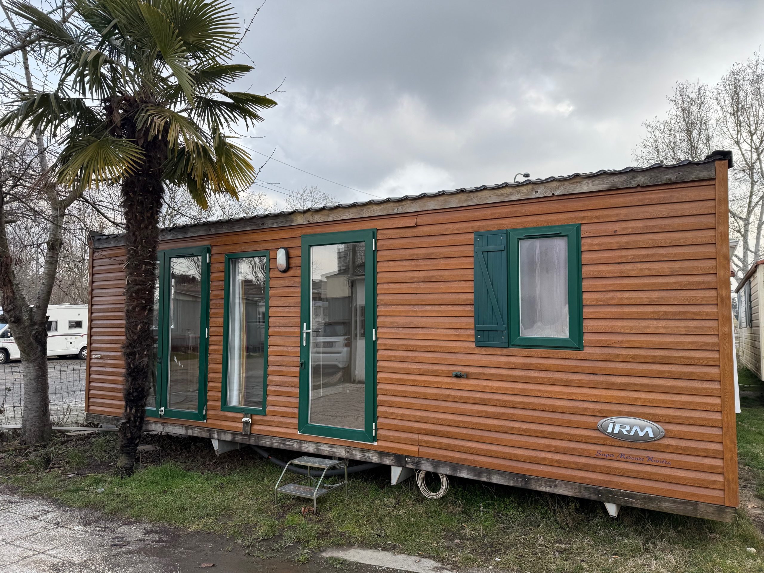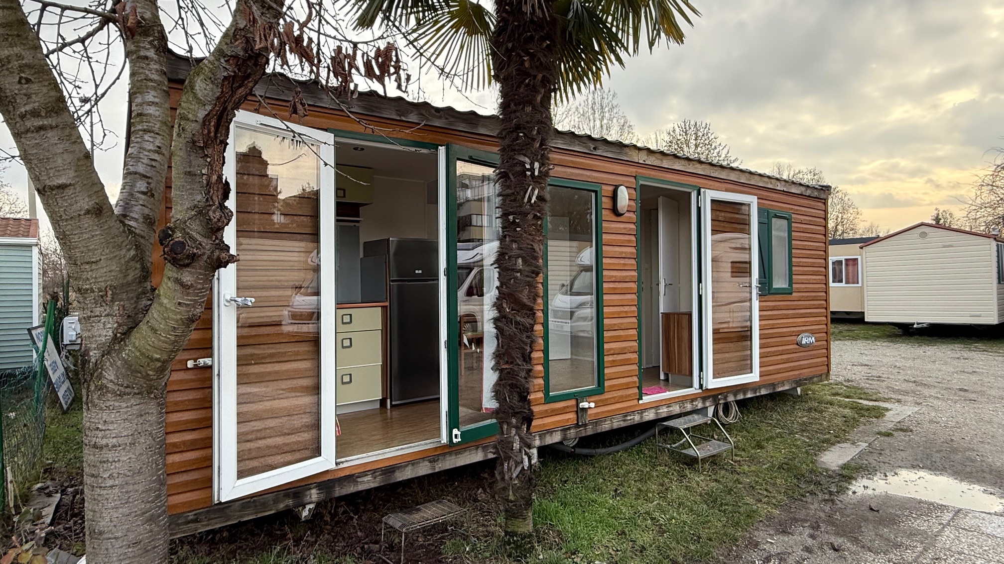 Casa mobile marca IRM, composta da una camera matrimoniale, cameretta ragazzi con 2 letti singoli, salotto con divano trasformabile in letto, cucina ad angolo e doppi servizi.