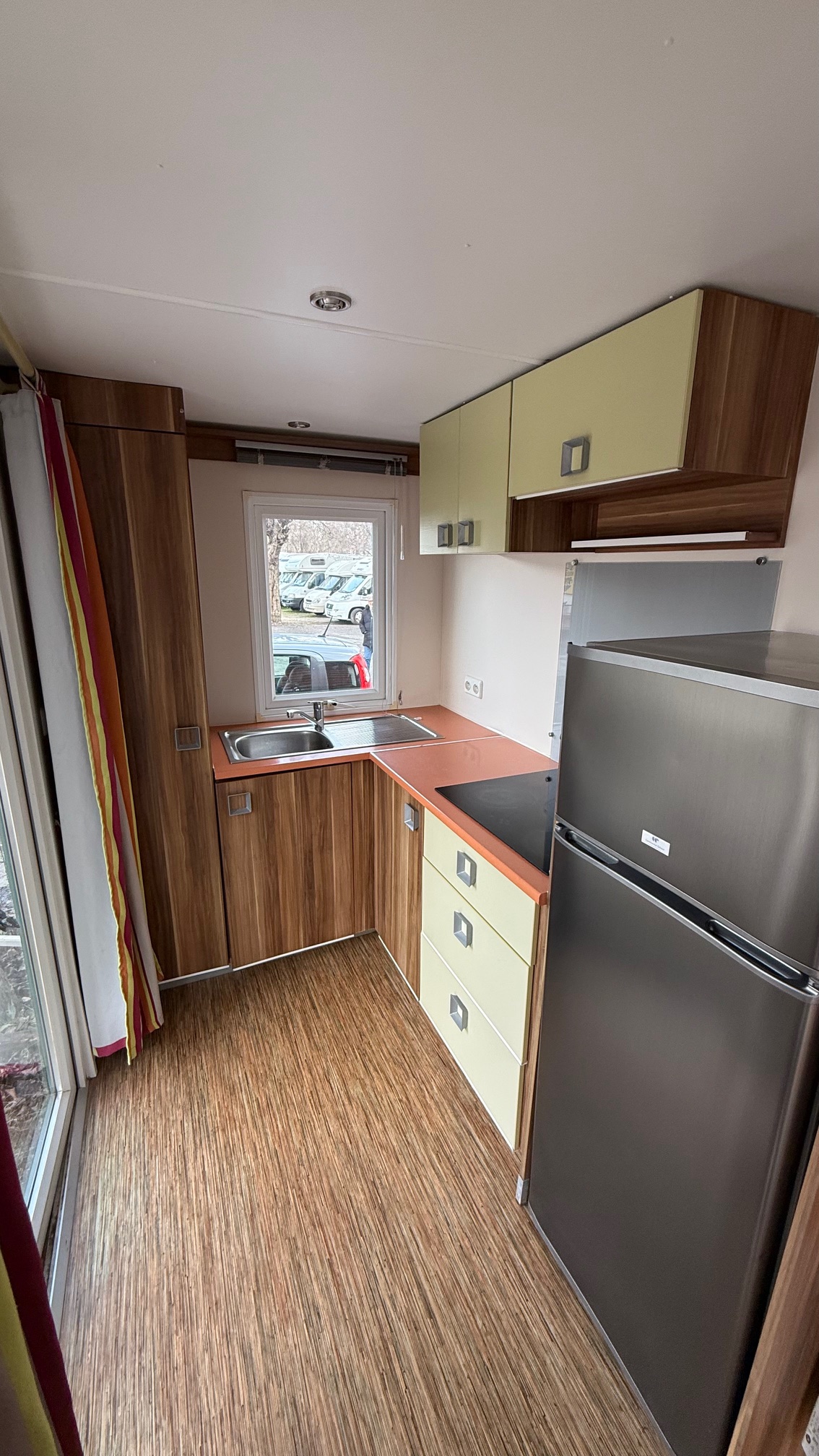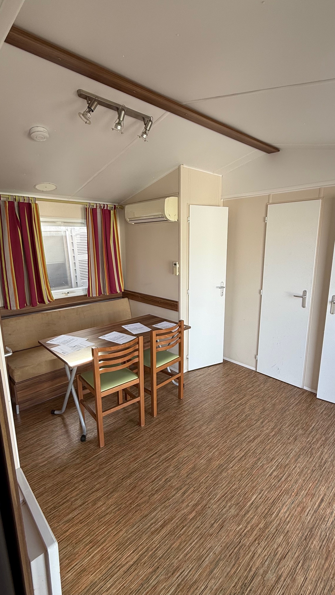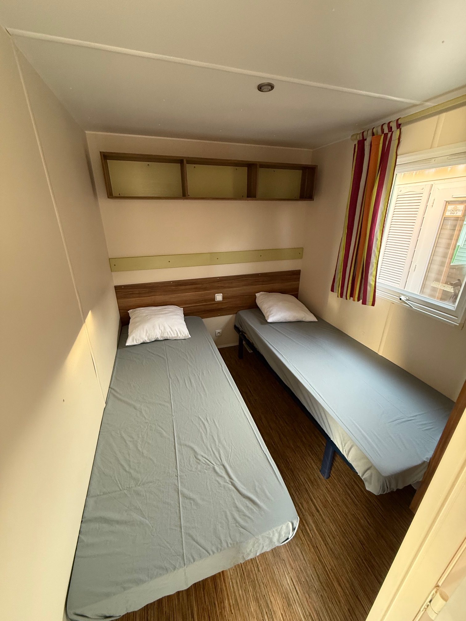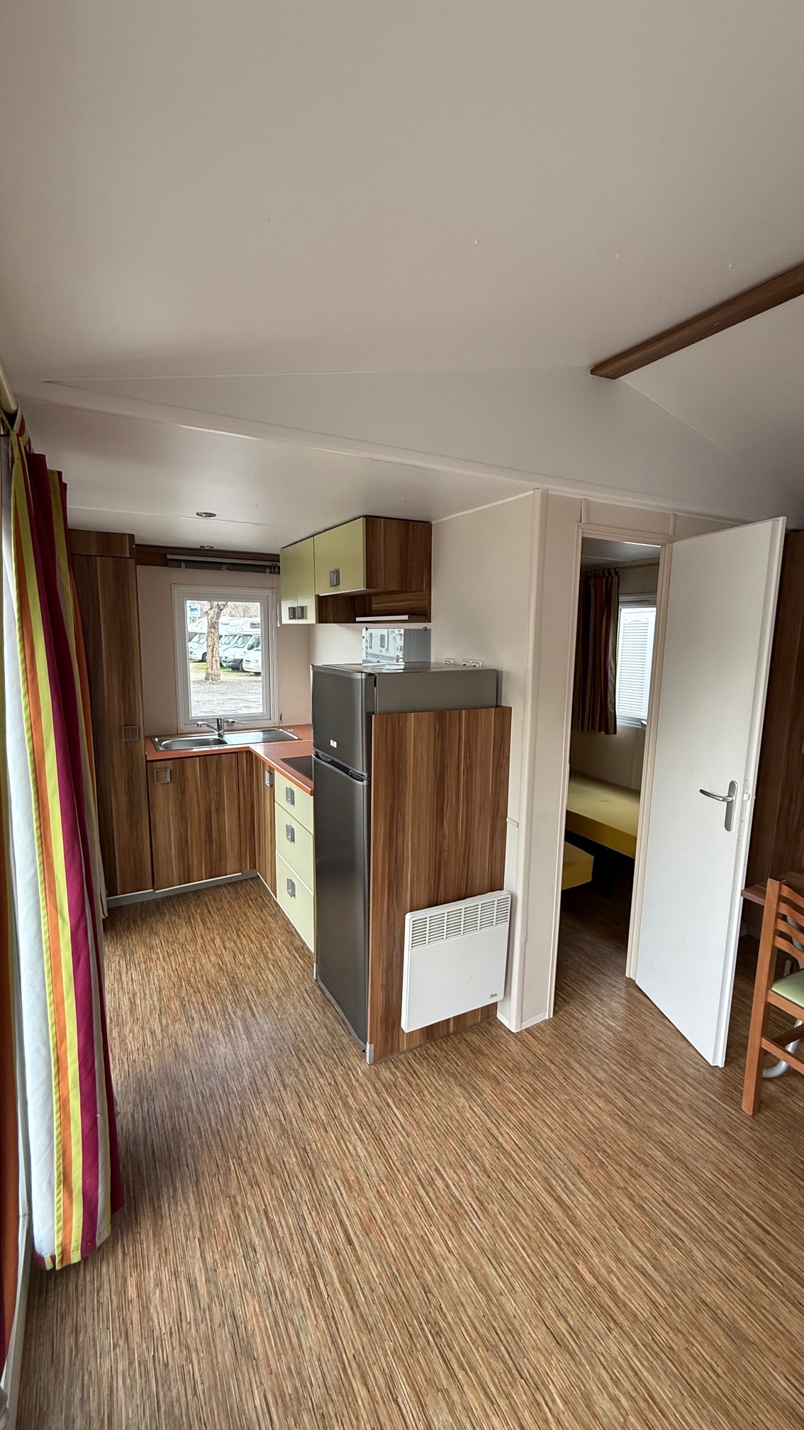 Casa mobile marca IRM, composta da una camera matrimoniale, cameretta ragazzi con 2 letti singoli, salotto con divano trasformabile in letto, cucina ad angolo e doppi servizi.